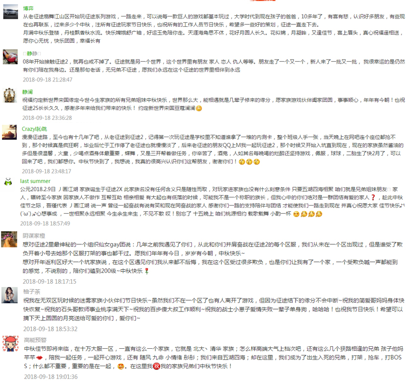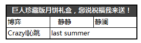 活动推出后,玩家们纷纷留言给兄弟、爱人、亲人送上了最真挚的中秋祝福!目前,该活动虽已圆满结束,但玩家参与热情不减,依旧送上中秋祝福,争相赢取巨人珍藏版月饼礼盒!
