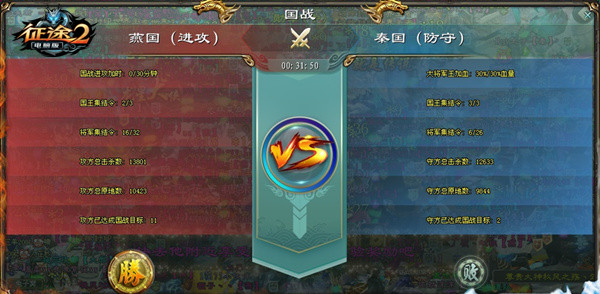 大将濒死,佛若拉令准备一波带走大将,此时,国战打响不到30分钟。飞龙将最后一次加血用上,成功拖住了时间,秦国勇士们为了获得第2分,继续与燕军拼杀,用自己的身躯替大将抵挡伤害,直到成功守住最后一分钟!