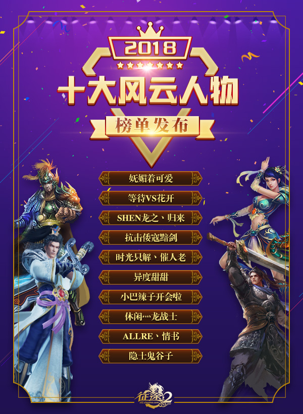 星光闪耀,照亮2018年征程!历时一个多月,跨越春节的《征途2》2018十大风云人物评选活动圆满落幕!
