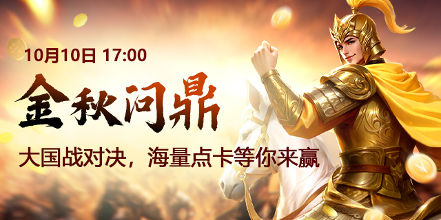 大国战对决火爆开启,统帅三军征战沙场,瓜分点卡奖励!十国分为两个阵营,每国作为攻方、守方,分别与敌对阵营的5个国家各进行2次国战,最终根据阵营总积分决定胜负,赢海量点卡!