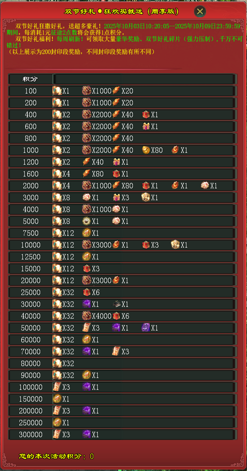 达成指定积分即可获得豪华山河图自选、神铭拓文·神王降临等好礼,达成3万积分可获“花神·至尊压制神力”BUFF碎片奖励!
