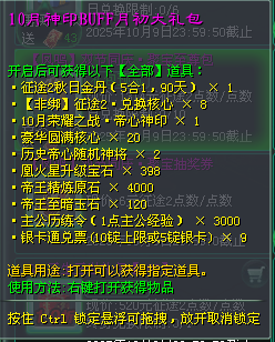 10月神印礼包限时上架,内含荣耀之战·帝心神印!激活征途2秋日金丹,随阶数提升获大量帝心固伤、凰火等级加成,对BUFF等阶低于自身的玩家造成至高28%增伤压制!