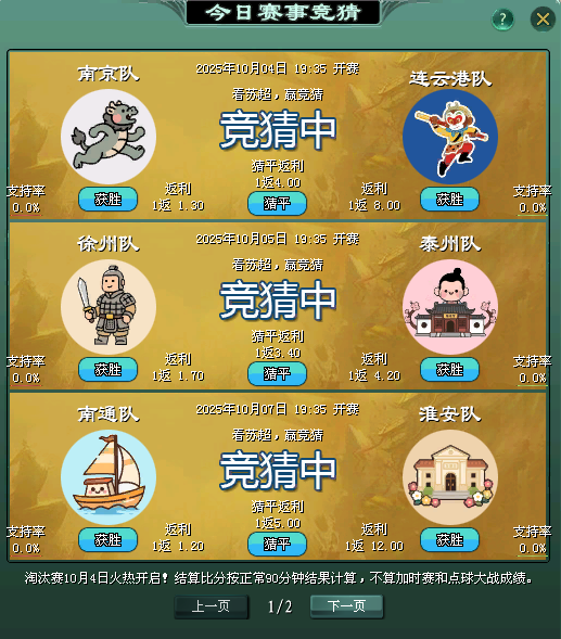 温馨提示:本周(10月4日、10月5日、10月7日、10月8日)苏超竞猜活动将会开启!
