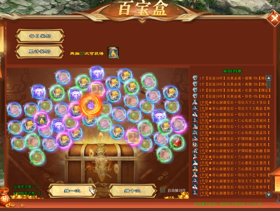 三、帝心战魂百宝盒开启,帝心战魂觉醒获取好时机,配合鉴定可得大量高品质帝心战魂宝珠!非绑金山挖出大量非绑银!限时开启金山武将排行榜,榜单前3名玩家将替换武将界面三皇形象!