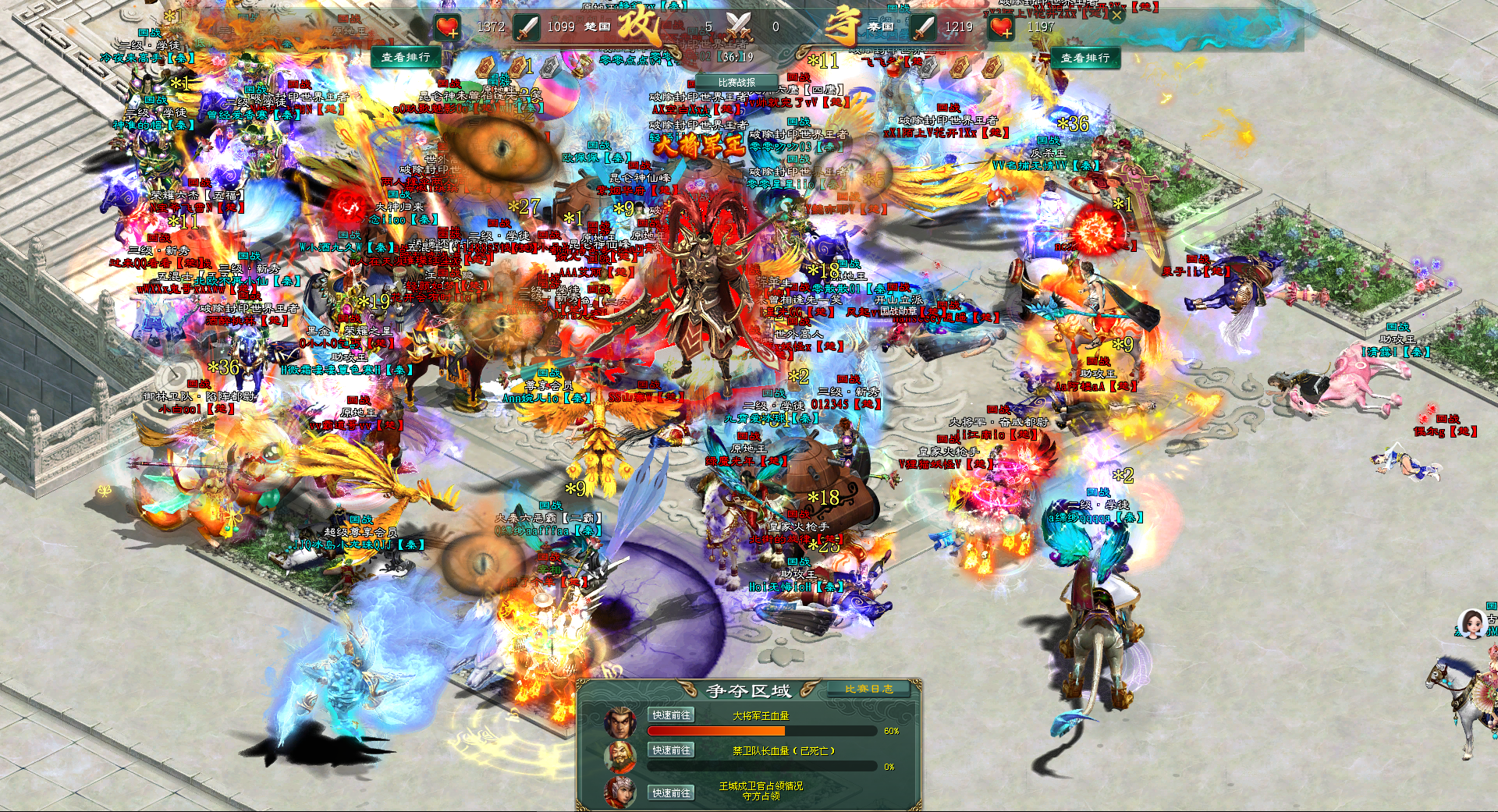 所有南方阵营秦国将士们,纷纷拉起集结令,落地攻击北方阵营楚国将士。很快,大将军王处北方阵营楚国许多将士被南方阵营秦国击倒,此时,已攻掉金钟的北方阵营楚国将士们赶回大将军王。