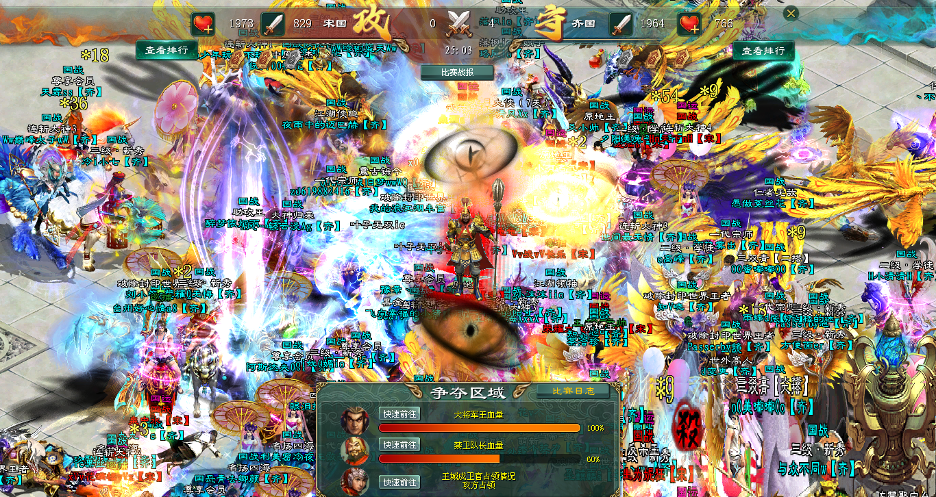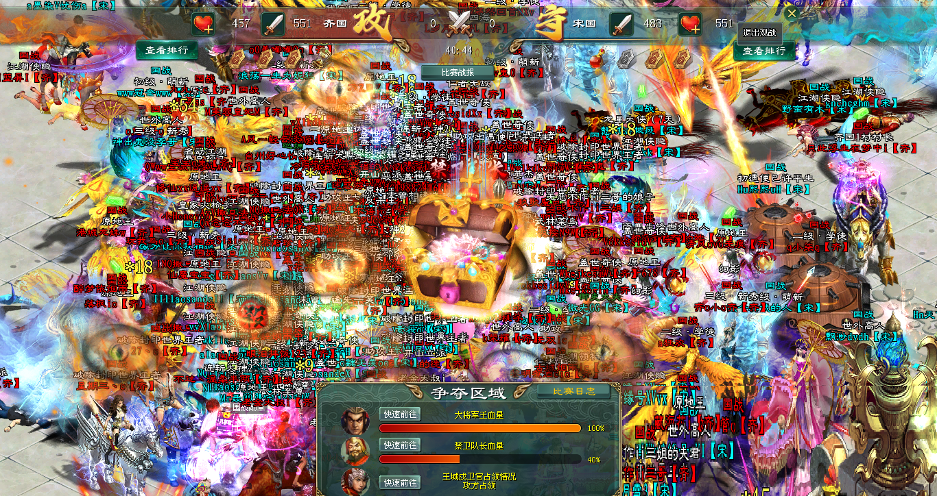 首战告捷,宋军迅速向齐国大将进发。此时齐国已经抢先拉出国王令,聚集全国兵力守在大将脚下,誓要死守最后防线。宋军趁胜追击,抵达后即刻拉出帮主令发起猛攻,大将血量迅速掉至90%。可齐国早有准备,在大将血量下滑的瞬间,就给大将加血,大将血量转眼就回满100%,又精神抖擞的伫立在那里。