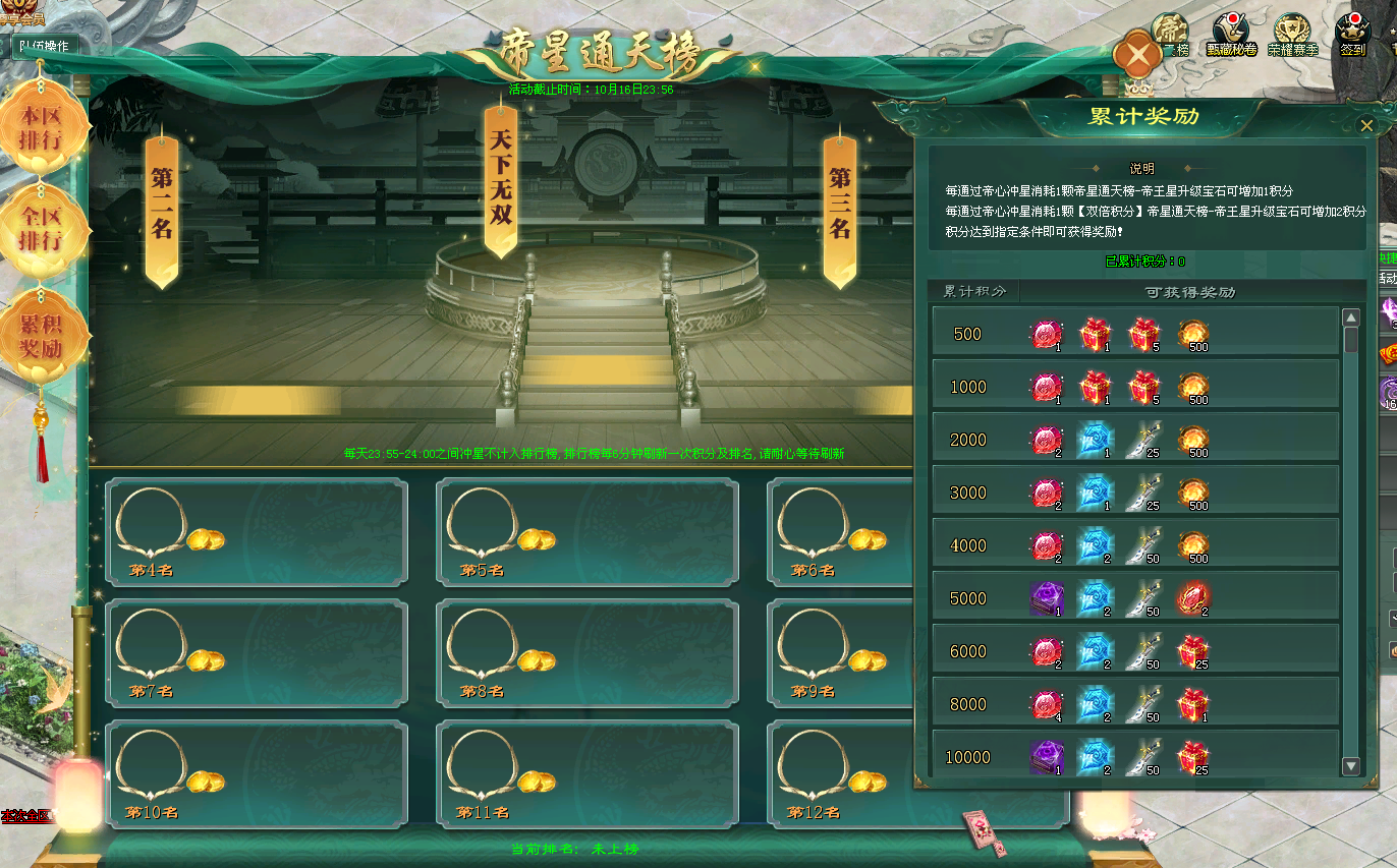 帝星通天榜限时开启,使用【帝星通天榜-帝王星升级宝石】获得积分,有机会获得15星帝王星转生直升石,帝王星石碑(十五槽)等丰厚豪礼!