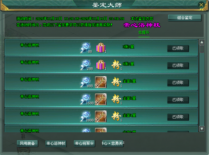 配合帝心洛神杖鉴定,获得更多高星卡牌!