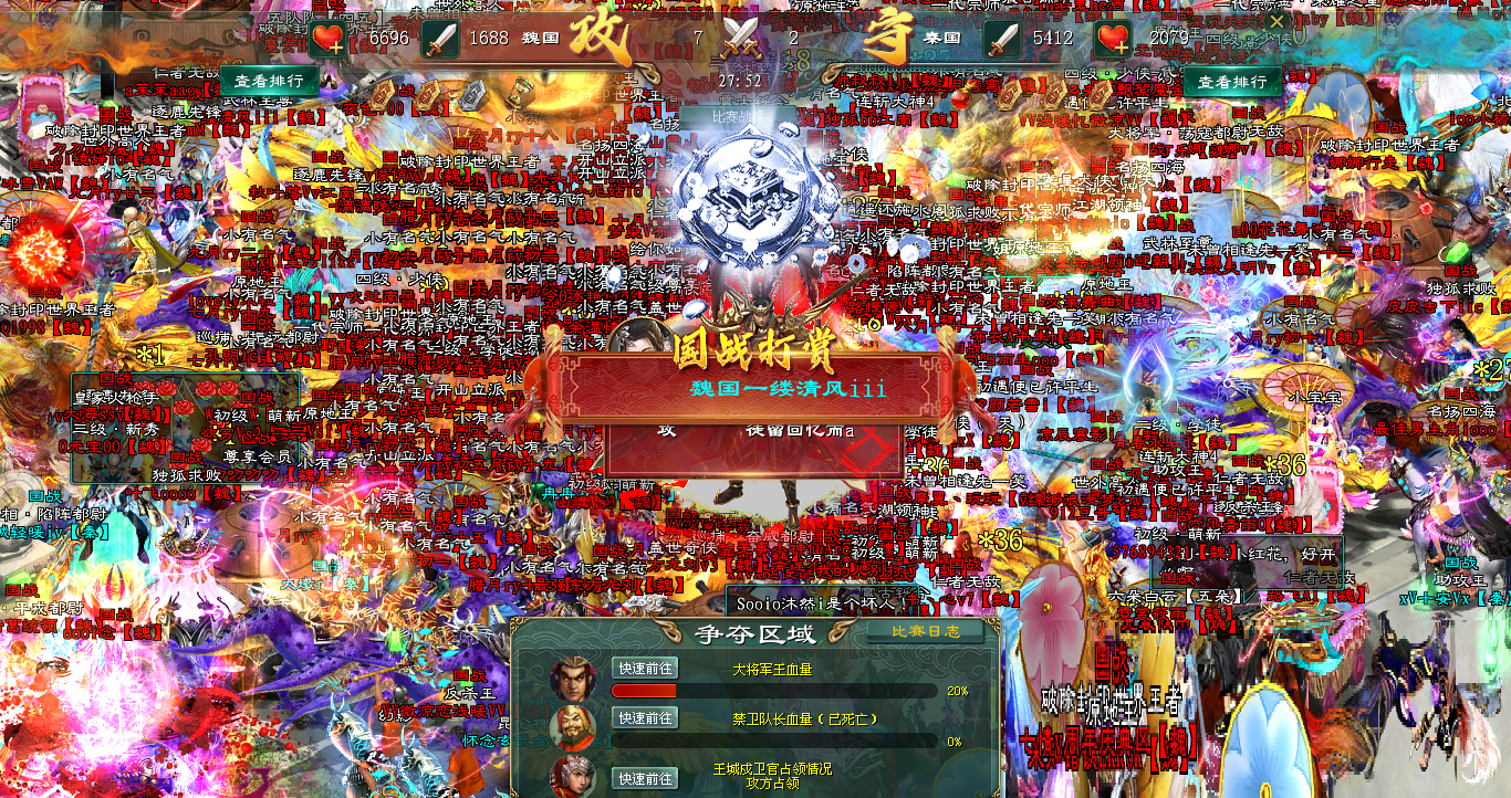 战鼓擂响,国战开始。魏国将士直扑柏西,城管和小将。秦国守军也立刻竭力反抗。可魏国的强势兵力又岂能是弱小的秦国所能抵抗得了的?小将这里根本无需拉令,当魏国给出赏金之后,对小将的攻击更是达到了空前猛烈的程度。等到柏西被攻下的时候,小将已经掉血20%。这令人惊叹的进攻速度,简直压的秦军喘不过气来。