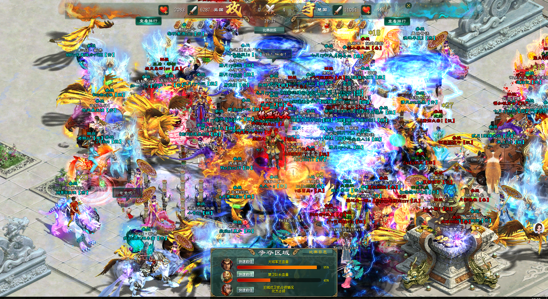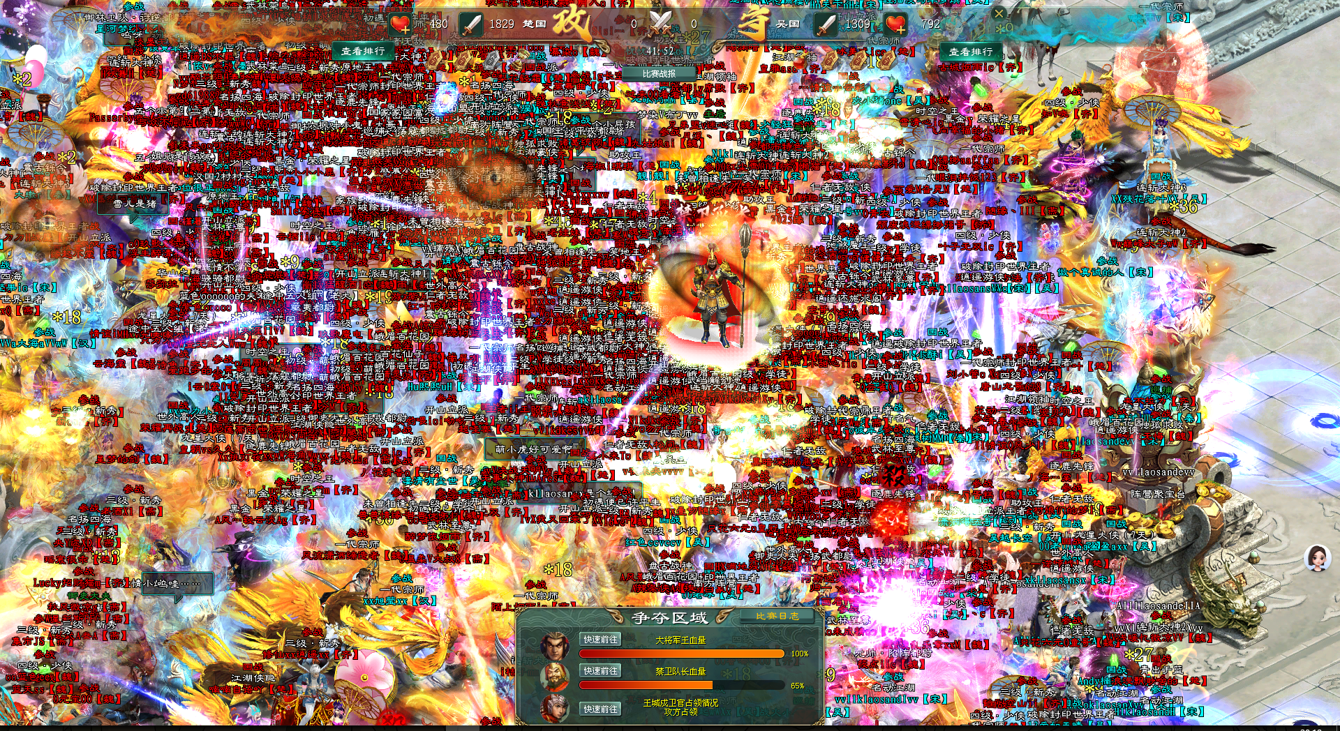 当禁卫队长的血量下降至一半时,北方阵营将士转回禁卫队长处进行防守,这大大增加了南方阵营将士进攻的难度。好在所有参战的南方阵营将士没人放弃,所有参战的南方阵营四国将士顶着北方阵营所有将士齐发的各种技能与大招,不停歇地攻击禁卫队长。