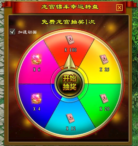 (2)重宝镖车龙宫转盘奖励升级:龙宫转盘额外增加点卡,获得点卡概率大提升;