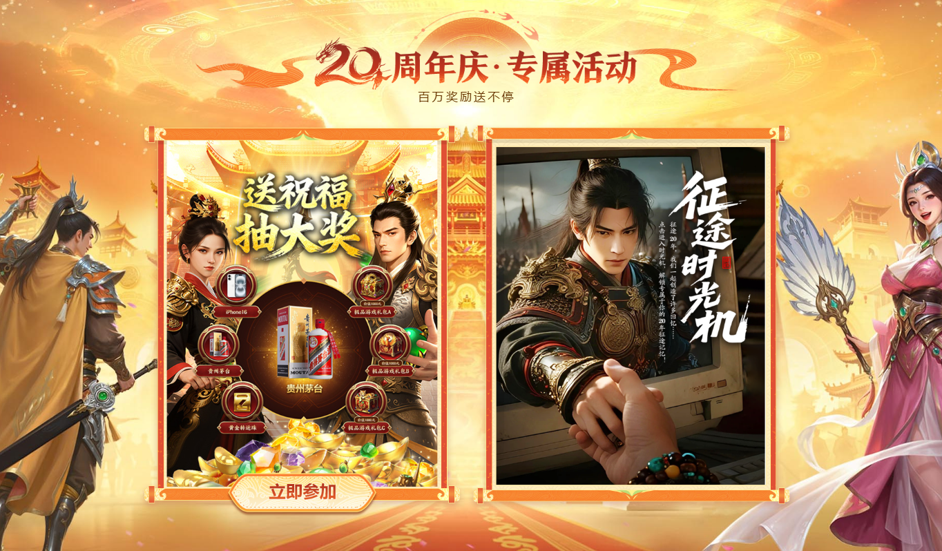 ■专属活动:参与送祝福抽大奖,赢iphone16、千份豪礼、极品道具。“征途时光机”活动即将开启,20载征途记忆等你解锁。