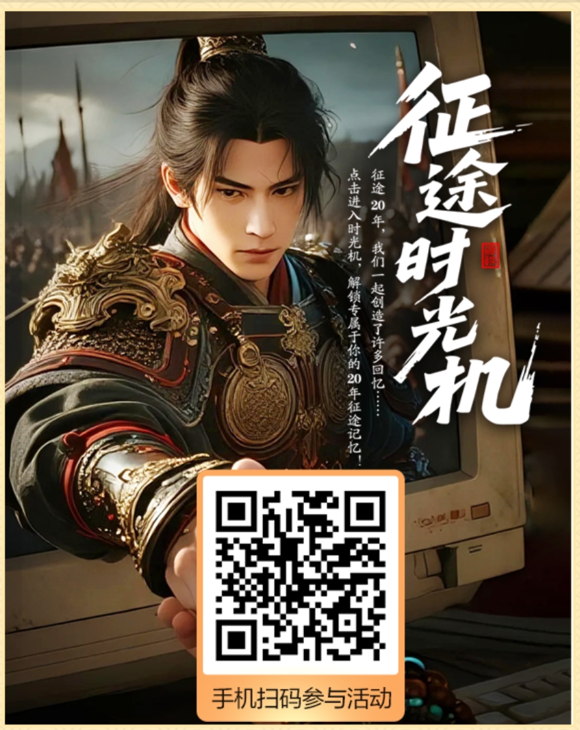 ■20周年征途时光机:征途20周年时光机温情上线,一键盘点你的征途趣味历程,唤醒青春记忆,再度点燃国战情怀,解锁征途独家记忆!