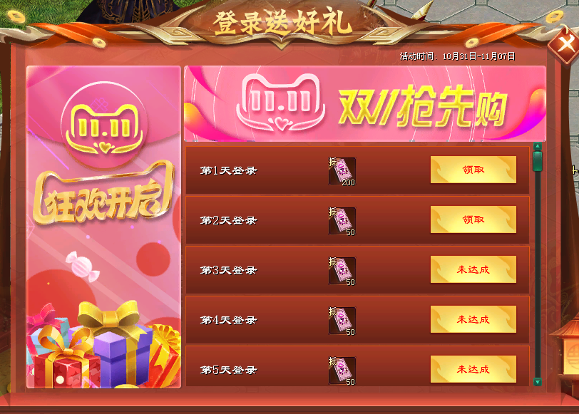 活动时间:10月31日更新后-11月13日