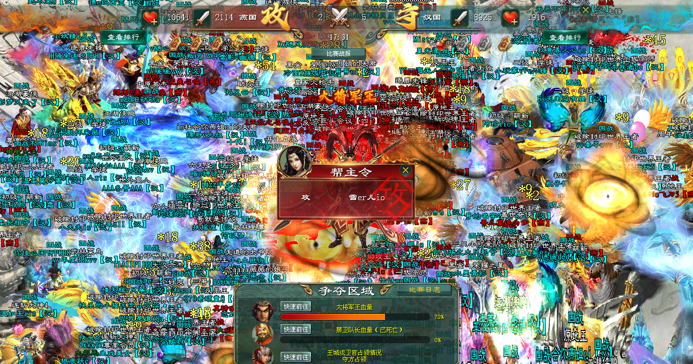 十几分钟后,汉国小将血量清零,战场宣告转移。燕国将士来不及休整,便迅速转向大将,同时战场之上赏金接连飞出,金色元宝洒落,燕军士气更盛,喊杀声直冲云霄。汉国深知大将乃国战胜负的关键,即刻拉出帮主令,守军们尽数集结,凭借地形与防御机甲顽强抵抗,大将掉血速度骤然放缓,燕国的进攻之路瞬间变得艰难。