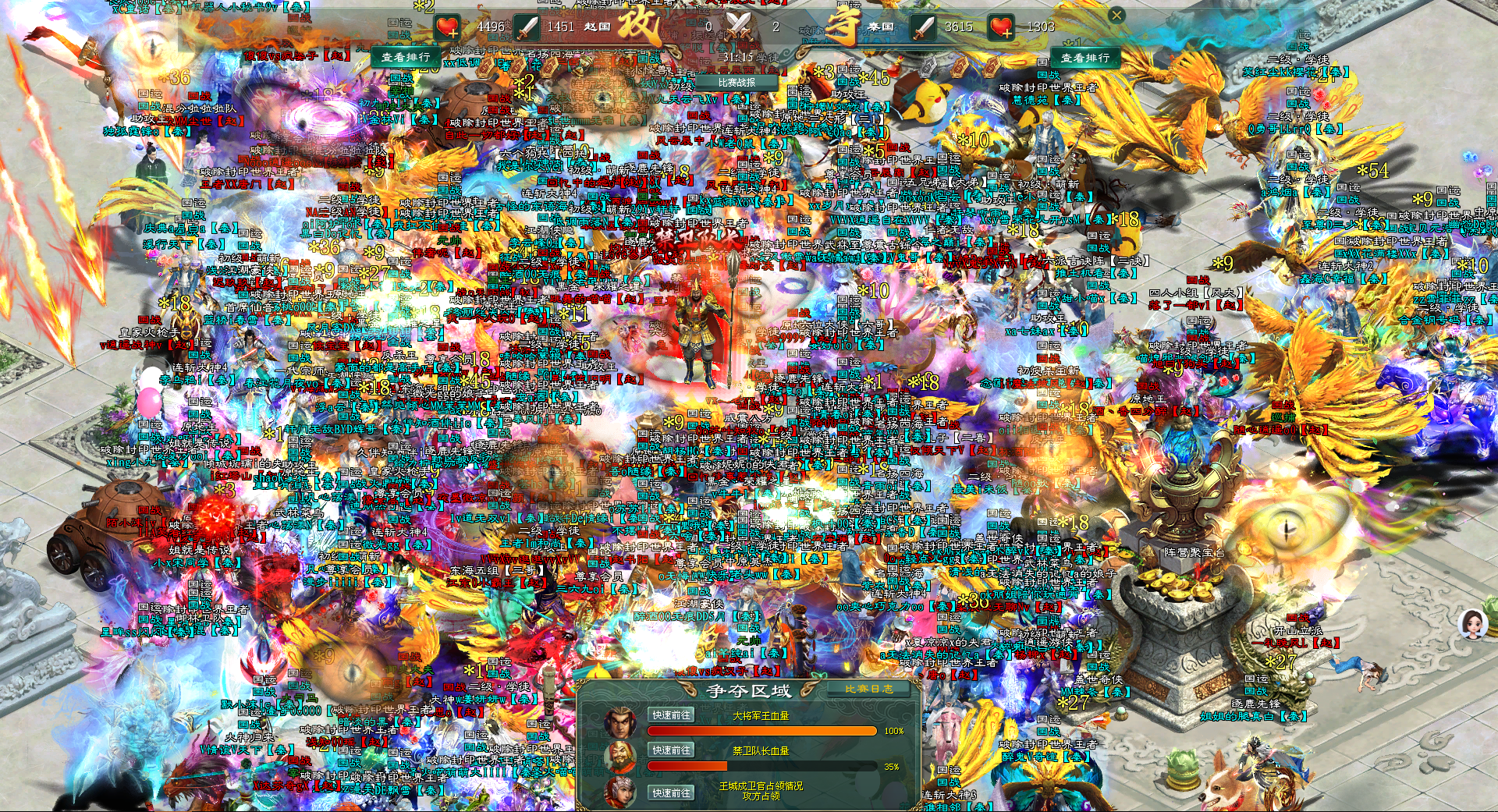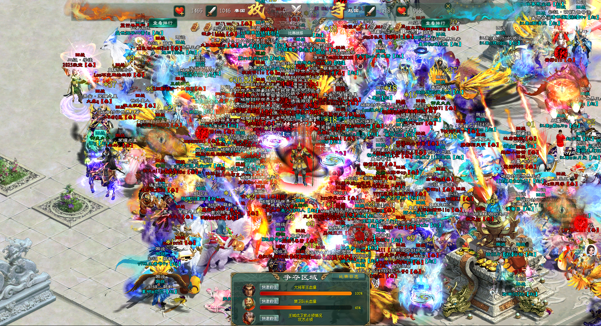 在大将军王的血量即将归零的时候,南方阵营秦国将士们发出了一阵欢呼,他们终于成功地击败了北方阵营赵国的防守,赢得了这场激烈的阵营战。