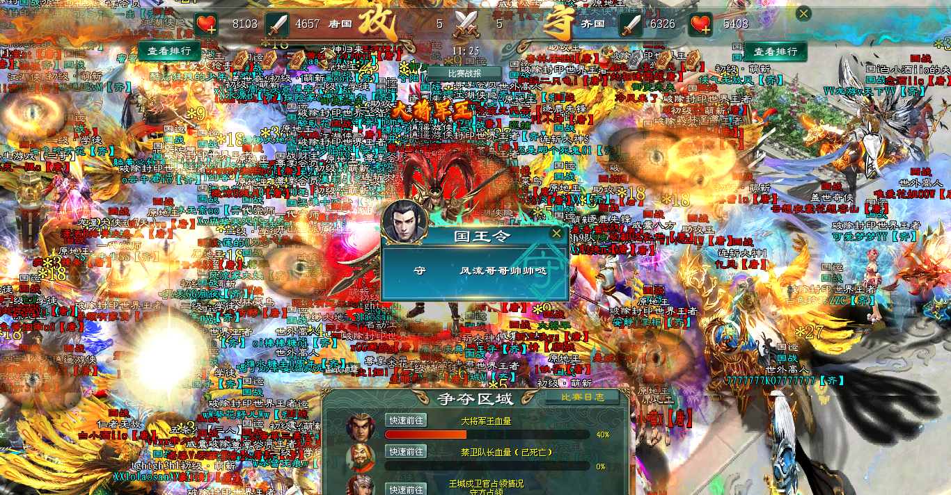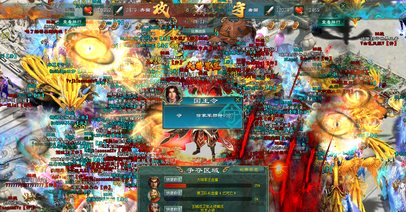当大将血量降至40%时,齐国终于甩出杀招——国王令!巨大的令牌飞舞在空中,召集来全国的将士,齐国的防御大幅提升,原本的颓势瞬间逆转,唐军进攻节奏被打乱。“不能退!接我国王令!”唐国国王令随即升空,两股强大力量在战场中央碰撞,大混战彻底爆发。唐军凭借前期优势,顶住齐国的反扑,继续向着大将发起冲击,大将血量稳步下降。