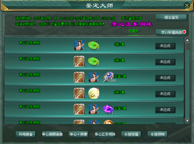帝心江东明珠鉴定奖励大幅提升,达成指定要求,获限定buff提升大量属性、大量龙吟星升级宝石!