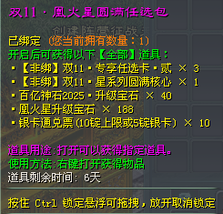 (3)激活月卡的玩家完成重宝刺探后,可获得刺探惊喜福袋(开启可概率获得非绑凤鸣·银、凤鸣·硬皮、非绑银);