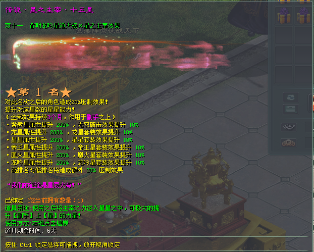 本期通天榜限时加入星之主宰,将对龙吟星、帝王星、凰火星等属性和套装生效!