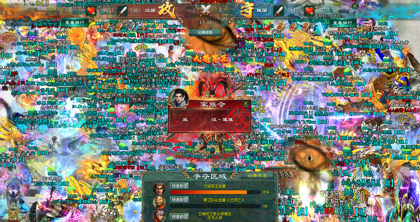 魏国家族长提早预判战局,在大将处等候。随着小将的死亡,魏国的家族令也悉数拉出,无数大军涌入大将战场,迅速构筑起新的防线。汉国将士也于危急之时拉出家族令支援,却终究抵不过对方。魏国兵力可是数倍于汉国的,那密密麻麻的将士如乌云盖顶,瞬间覆盖了汉国的进攻阵型。汉国将士被魏国大军团团包围,仿佛漂浮在茫茫大海的一叶孤舟,随时面临倾覆的危险。