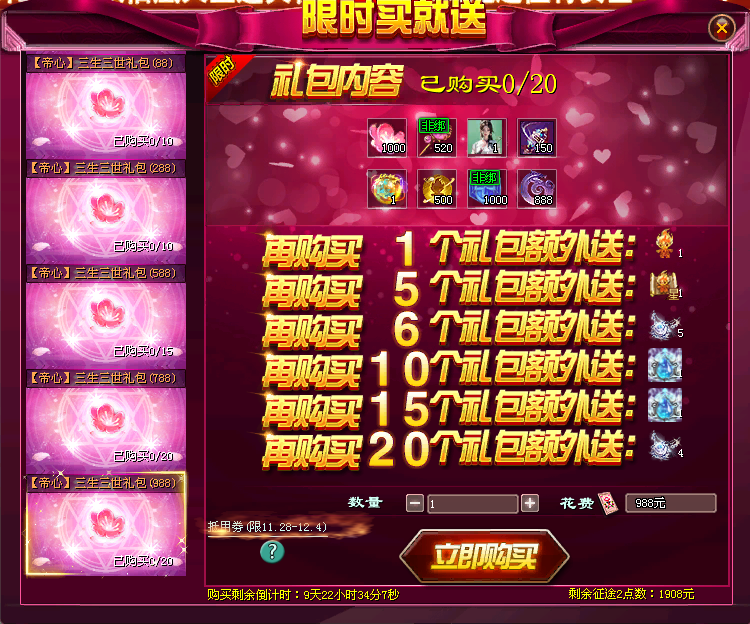 3、三生三世限时买就送礼包,买就送定情信物自选!