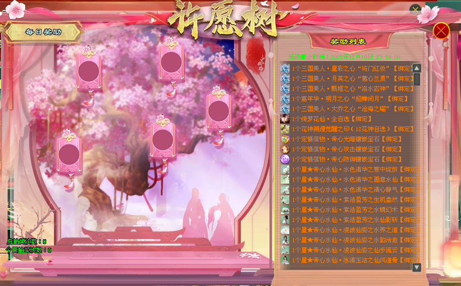 副武器帝王玉玺、祥瑞龙珠加入许愿树,通过“三生三世豪华兑换金卡”可兑换副武器、非绑橙色记忆。