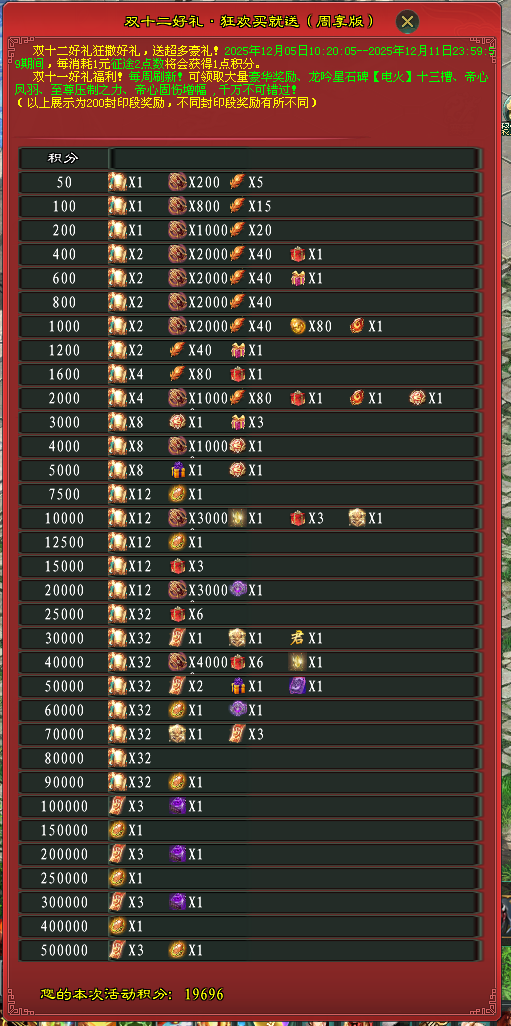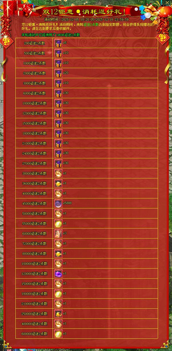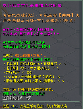 可获取成长线升级道具-百亿战魂2025·升级宝石(非绑)、双12·尊享超级核心(非绑)等好礼!