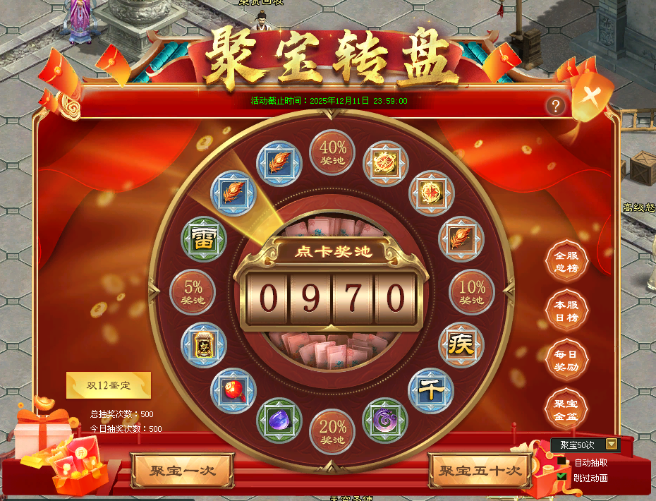 从聚宝转盘中累计获取点卡,还可激活心愿硬币等金盆奖励!