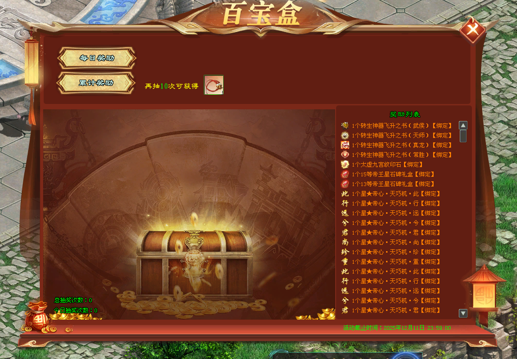 本期奖励新增百亿神石2025升级宝石、龙吟星【电火随机】13槽和龙吟星【火】13槽,助力快速养成!