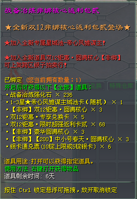 (3)激活月卡的玩家完成重宝刺探后,可获得刺探惊喜福袋(开启可概率获得非绑凤鸣·银、凤鸣·硬皮、非绑银);