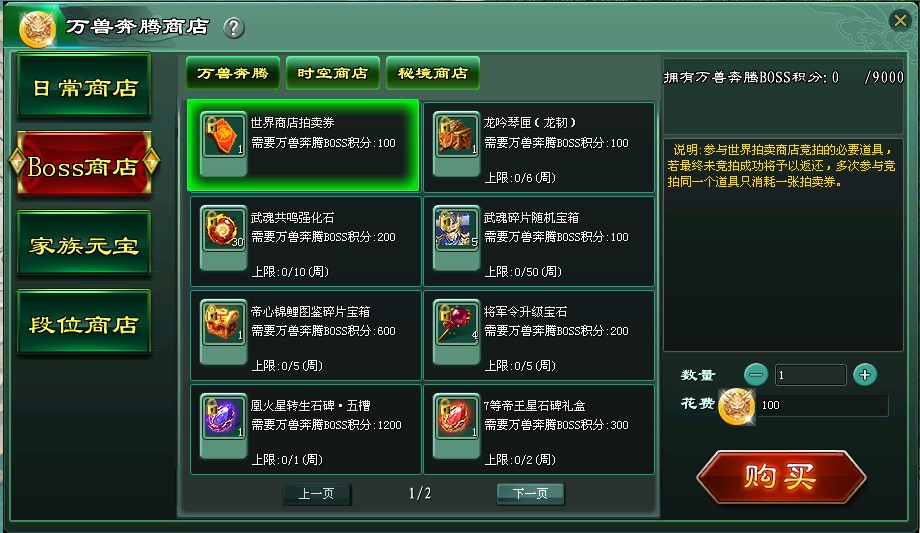 万兽奔腾BOSS商店:新增凰火星转生石碑·五槽、武魂碎片随机宝箱等奖励;