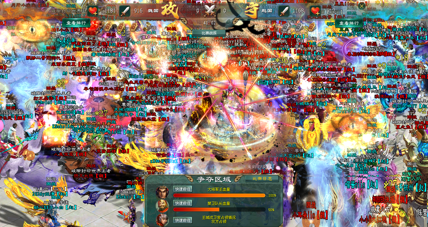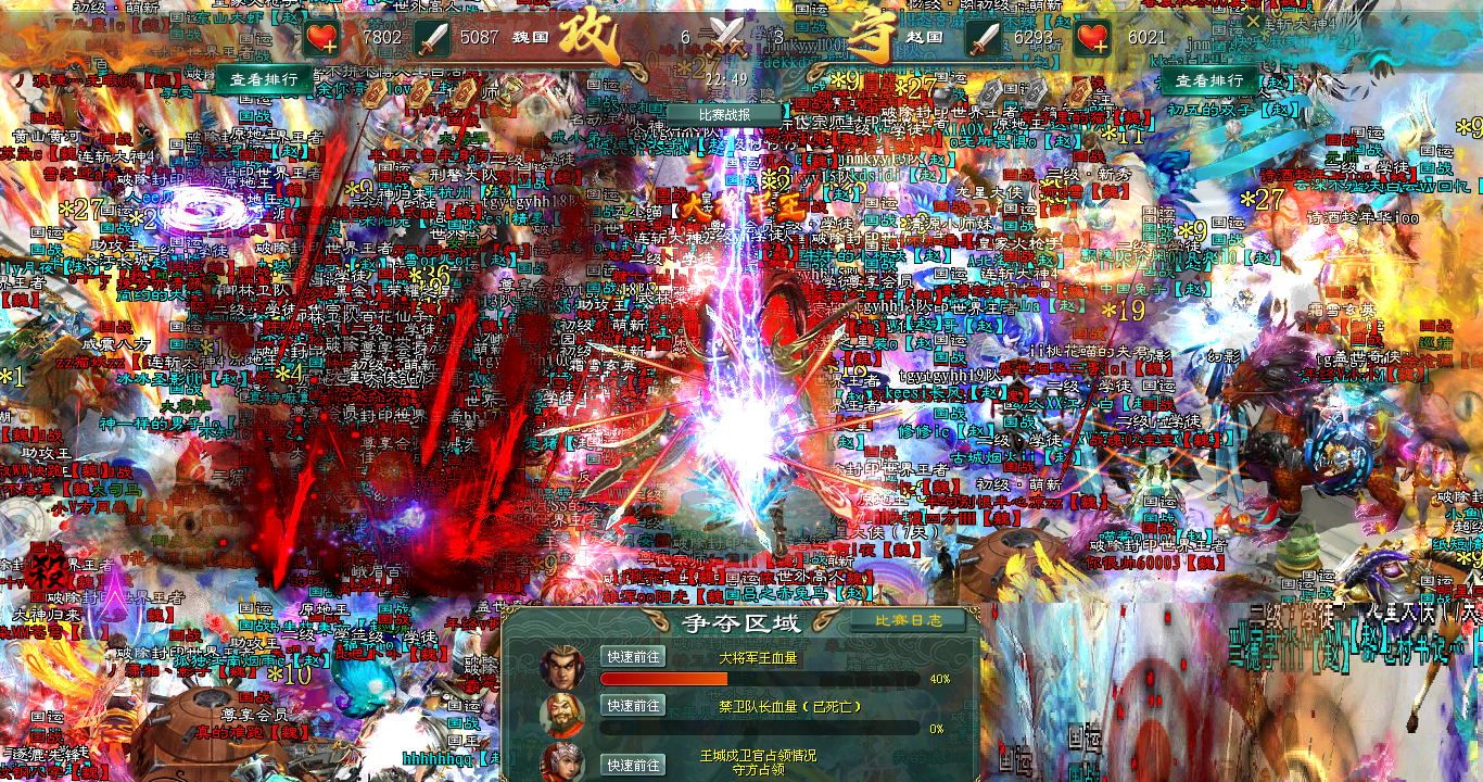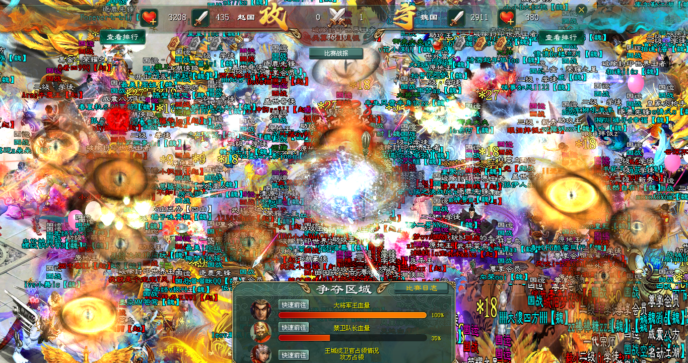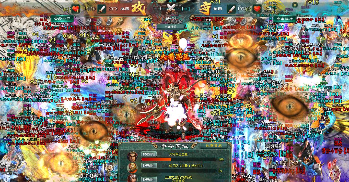 赵国将士奋不顾身,踩着风骚的走位无限冲锋,刀剑所至,血流成河,大将失血。可是国战时间要结束了,赵国只好选择加时,誓要向着胜利冲锋!魏国也不甘示弱,随即给大将加血,两军再度陷入激烈的火拼!战场上,烽火赤壁,光芒万道,生生的撕裂天幕,两国将士的咆哮嘶吼声震九天,碎裂山河。