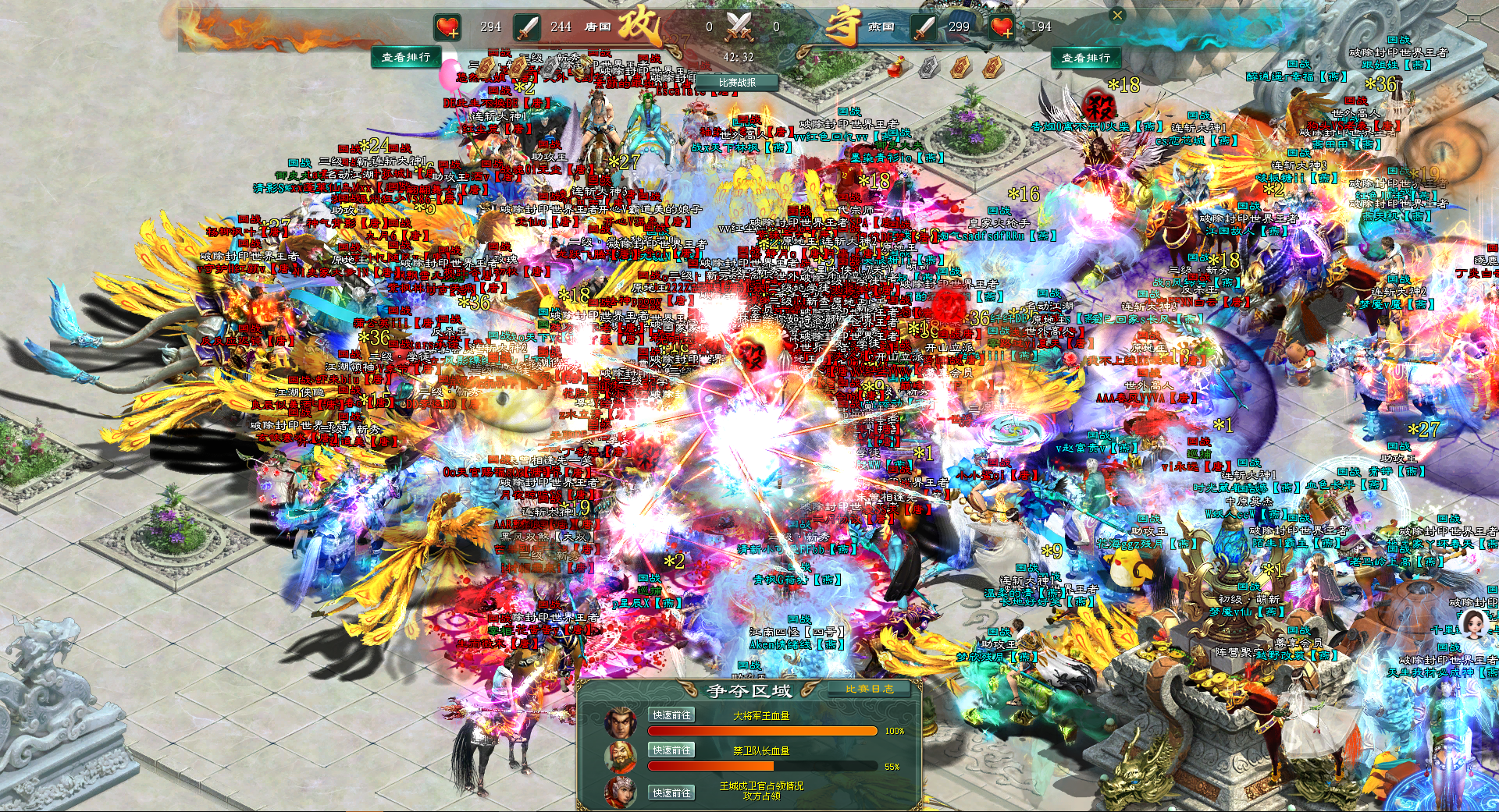 唐国玩家虽然也承受着不小的损失,但凭借着更庞大的人数基数和持续不断的补给,始终牢牢掌握着场上的主动权。他们的火力再次重新聚焦到大将军王身上,各种高伤害技能如同雨点般落下。