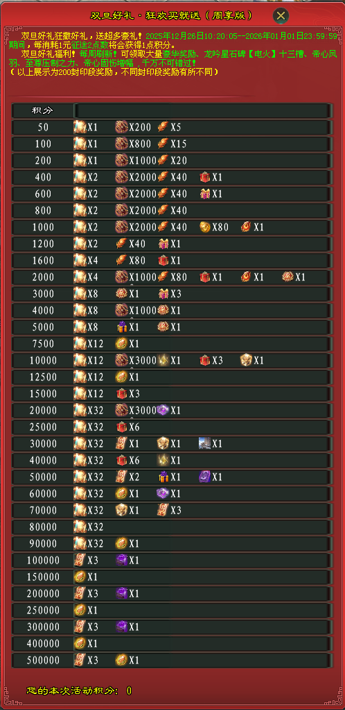 活动时间:12月26日更新后-1月2日