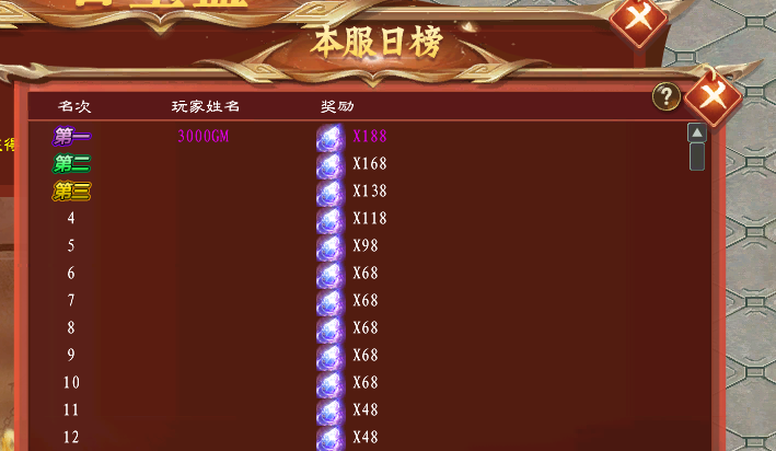 通过本服榜单,可额外获得转生神铸石。