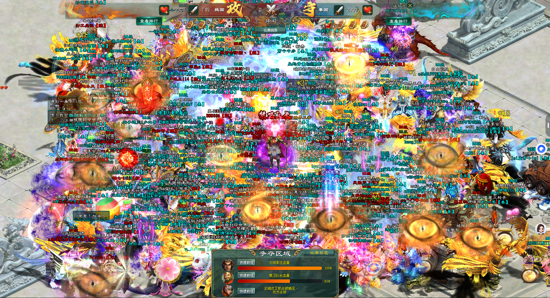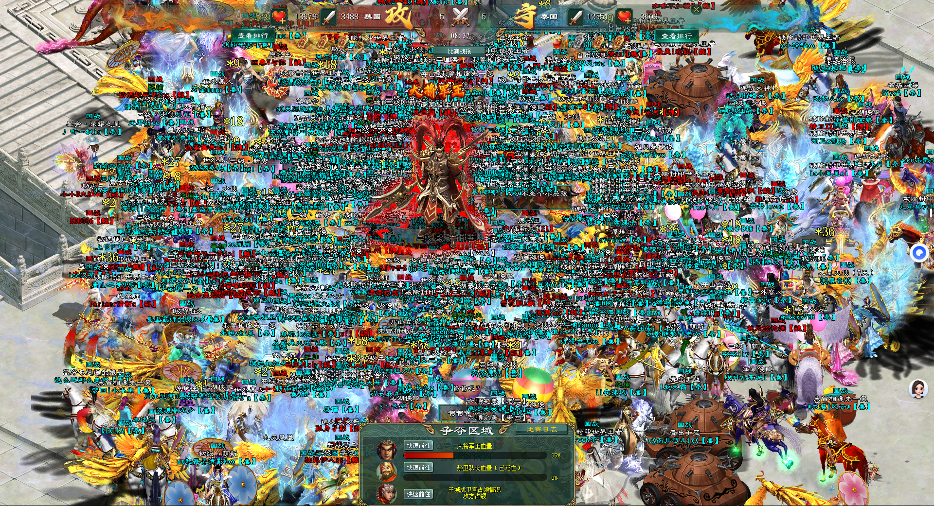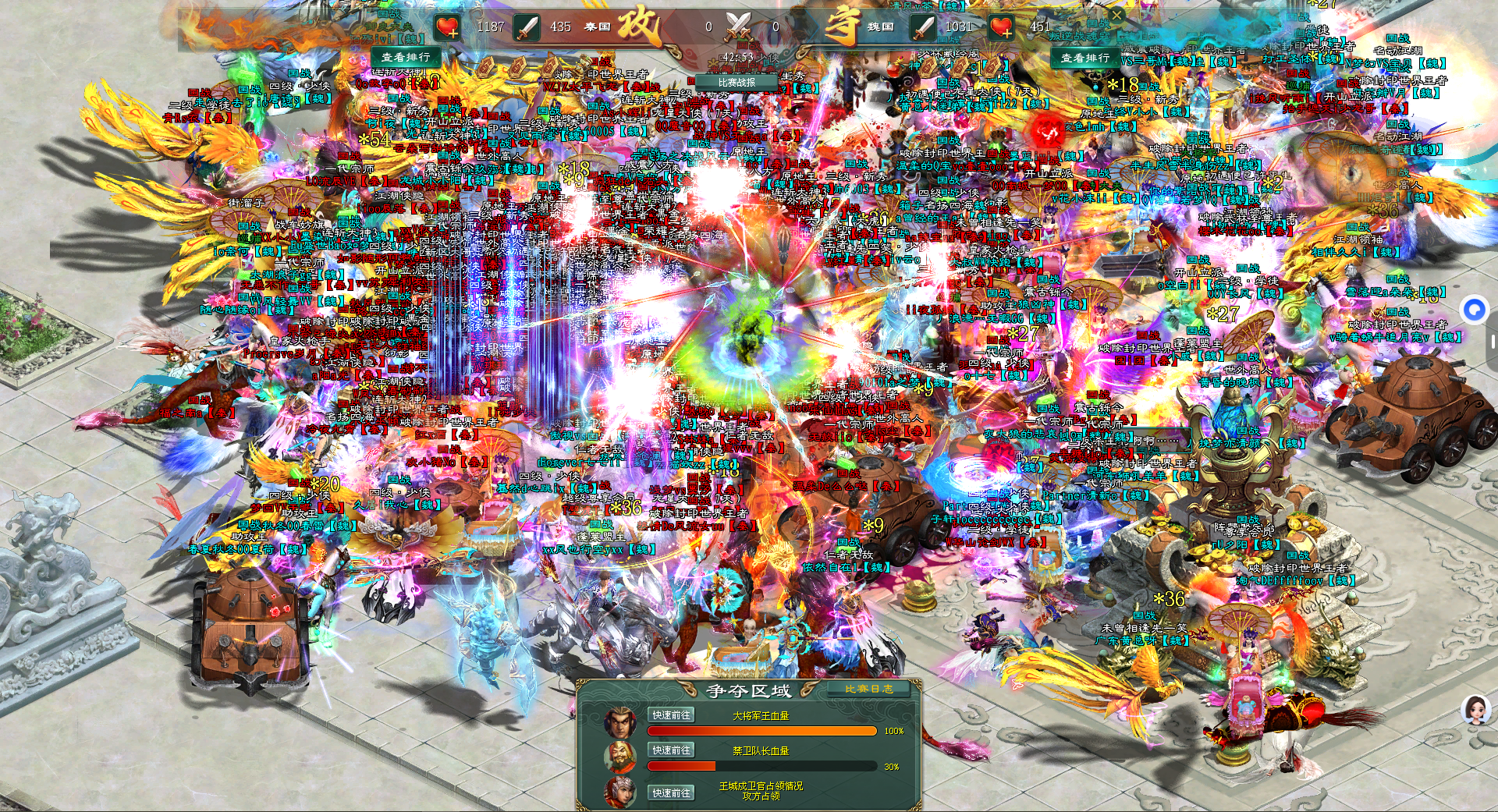 大将军王的血量在秦国将士们的集火下缓慢而坚定地减少着,从百分之百到百分之六十,此时金钟出现,所有参战的秦国将士转移至金钟处,进行防御的魏国将士紧跟其后,却因秦国进攻的火力太猛,金钟很快就被击掉。