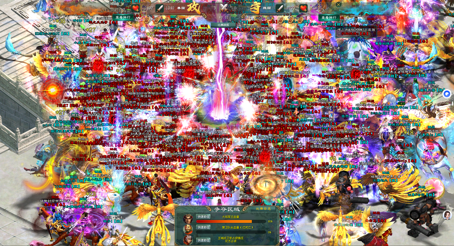 国战开启前,作为防守国的秦国所有参战将士们早早地守在了禁卫队长的四周,围得密不透风,就等着魏国送上门的人头。当国战号角吹响后,魏国参战将士们,以空降方式落在了魏国的包围圈中,他们落地之后,手中的武器全部锁定在了禁卫队长的身上,完全无视秦国将士施放在他们身上的各大技能与大招,只一心攻击禁卫队长。