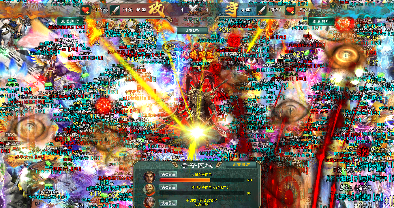 齐国迅猛有力的进攻并不是楚国的力量所能防御得住的。他们的远程和近战的火力密切配合,几乎覆盖了小将周围,远远望去,只能看到小将的身上有一团火焰在燃烧,令其血量不断流逝。楚国守军仍然顽强战斗,可阵线却被不断压缩。激战八分钟,在齐军一波接一波的攻击下,楚国小将最终血枯,颓然倒下。