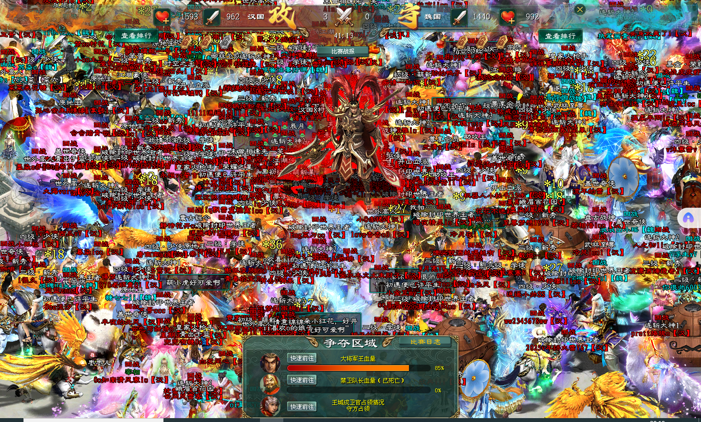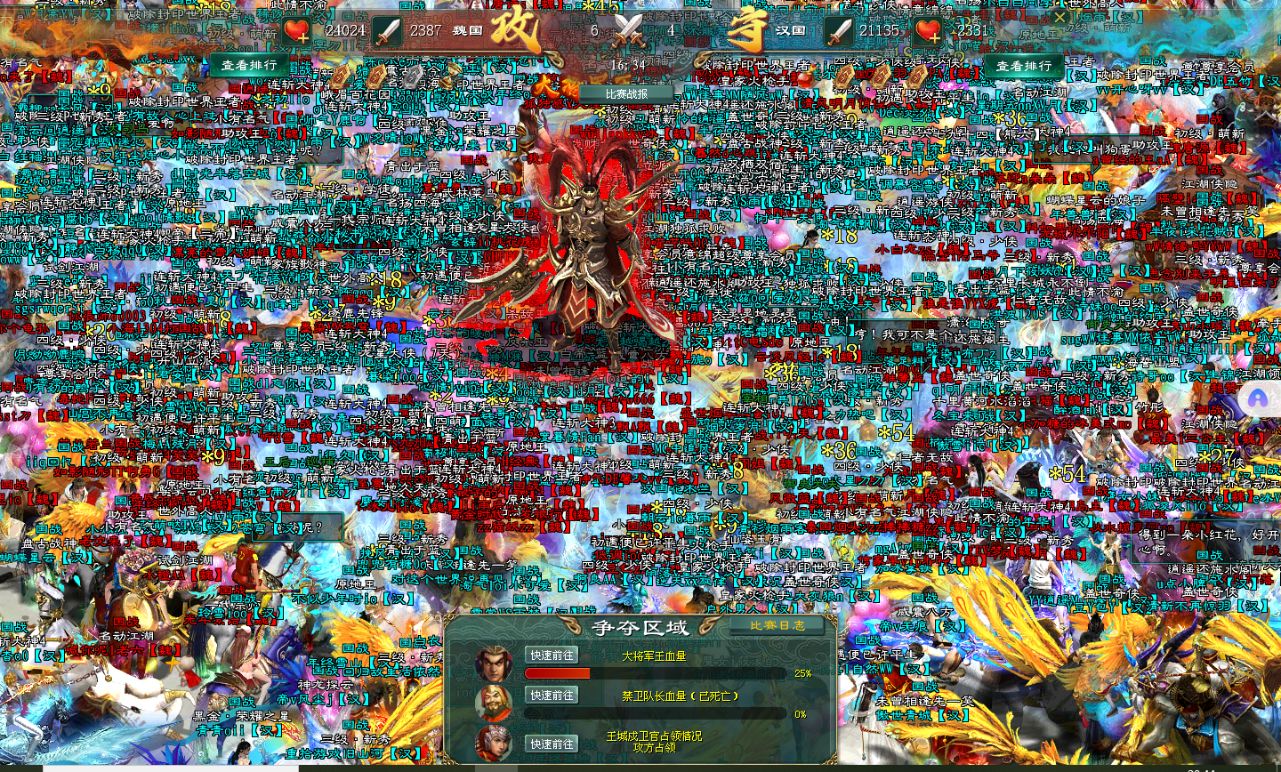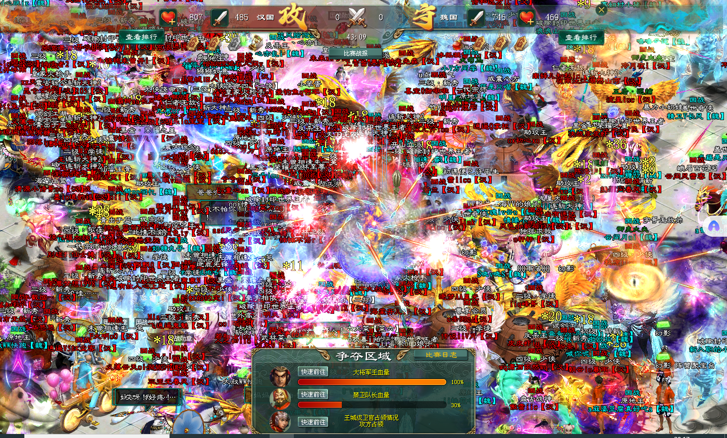 随着汉军技能的波及,大将军王的血量也逐渐下降,魏军一见大将军王的血量下降,开始疯狂拉令防守,这在国战中就是要结束了,但是令得全用光,不管结果咋样,打还是要打上一打的。
