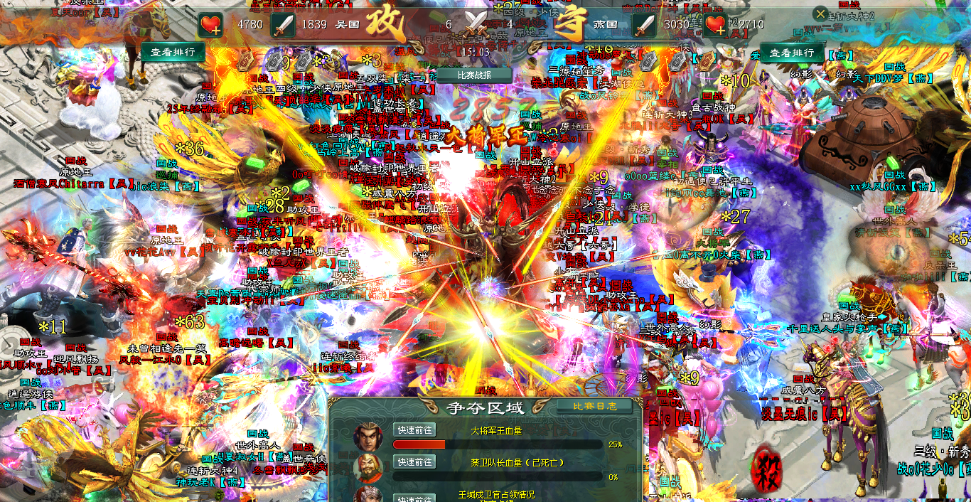 最后的时刻终于来到了,大将濒临死亡,燕国发动了自杀式的冲锋,并给大将加血。与此同时,吴国也发布了最后的总攻命令。没有更多华丽的辞令,只剩下无限的冲杀。国频上不断滚动着“冲啊,杀杀杀!”所有吴军将士在同一秒将技能甩向大将。技能的光亮再次淹没大将,在这片耀眼的光芒中,燕国大将瞬间血空倒下,吴国胜利了。