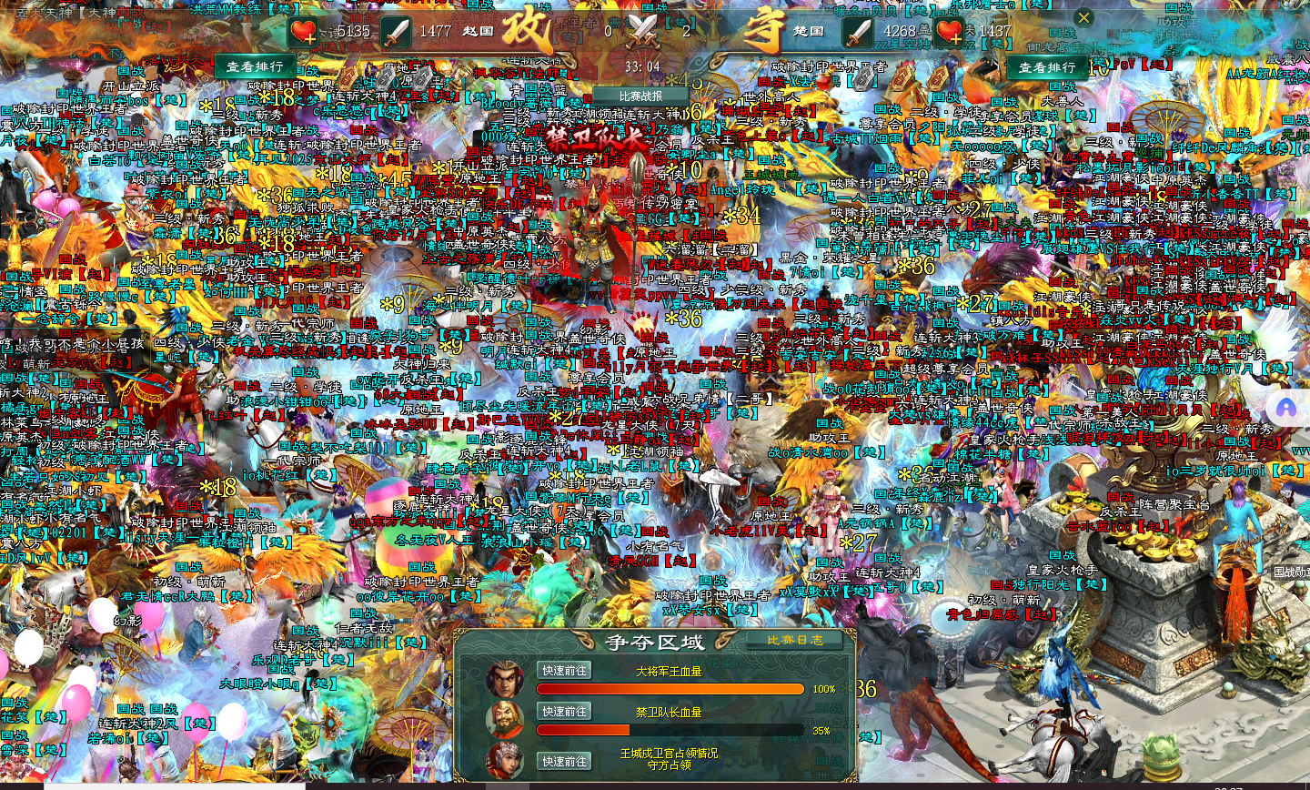 大将军王每一次掉下来的血量都是楚国战士们血一般的纪念,赵军战士从国战开始的防守势头就一轮比一轮的猛,楚军战士再是勇猛无双也很难低于来自赵军的穷追猛打。
