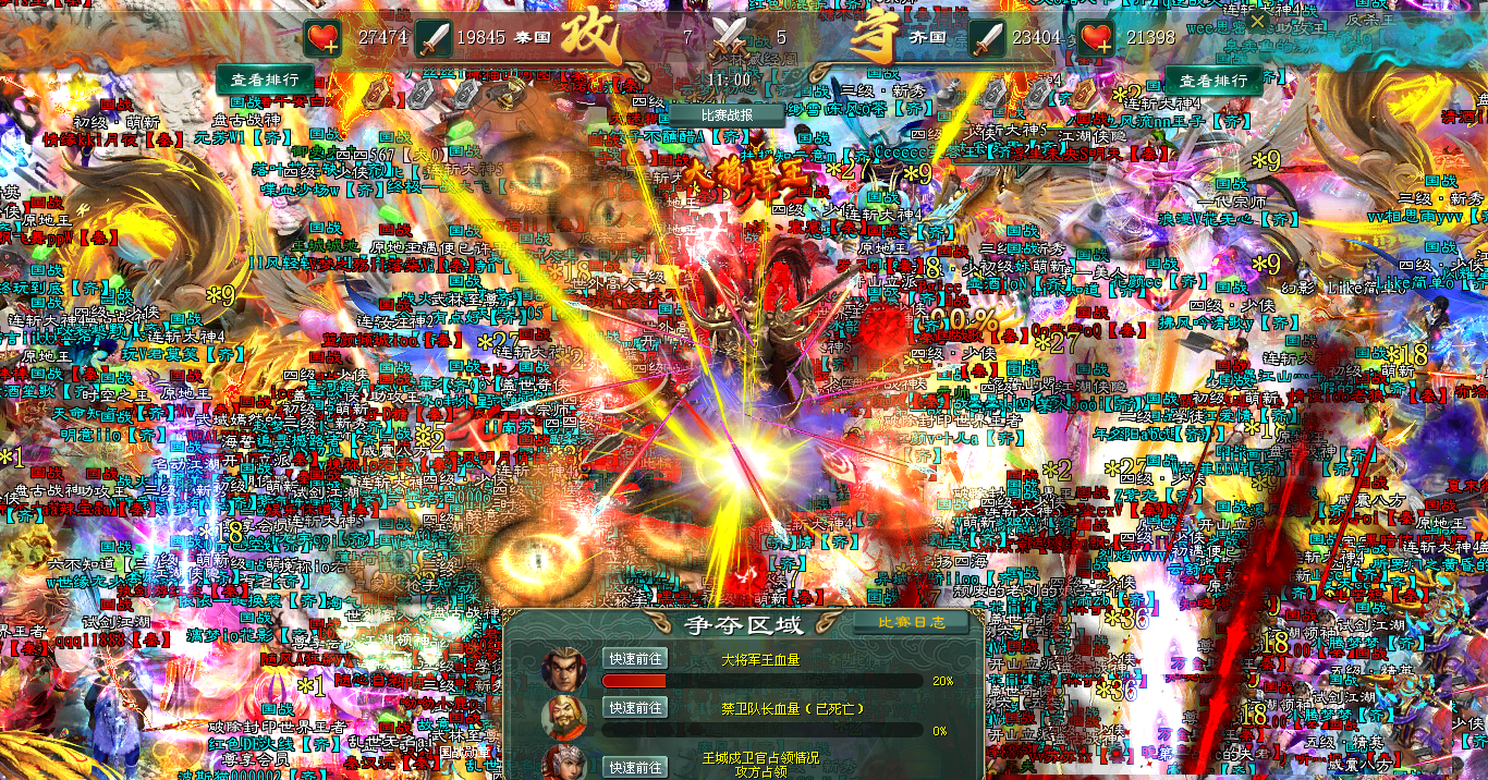 没有更多言语。最后一轮国王令、家族令悉数爆发,将齐秦两国最后的、最精锐的力量集结于此,在这一刻他们毫无保留地对撞在一起。技能的音效淹没了一切,屏幕上只剩下爆炸性的光影与疯狂跳动的伤害数字,仿佛屏幕都会在这对决中崩裂。