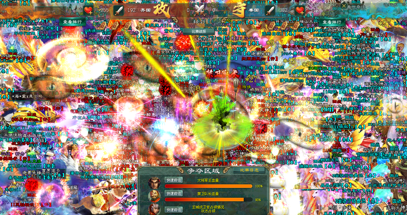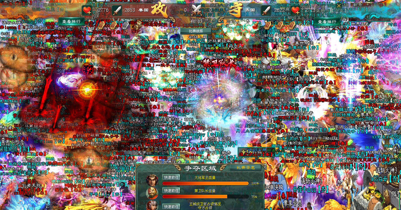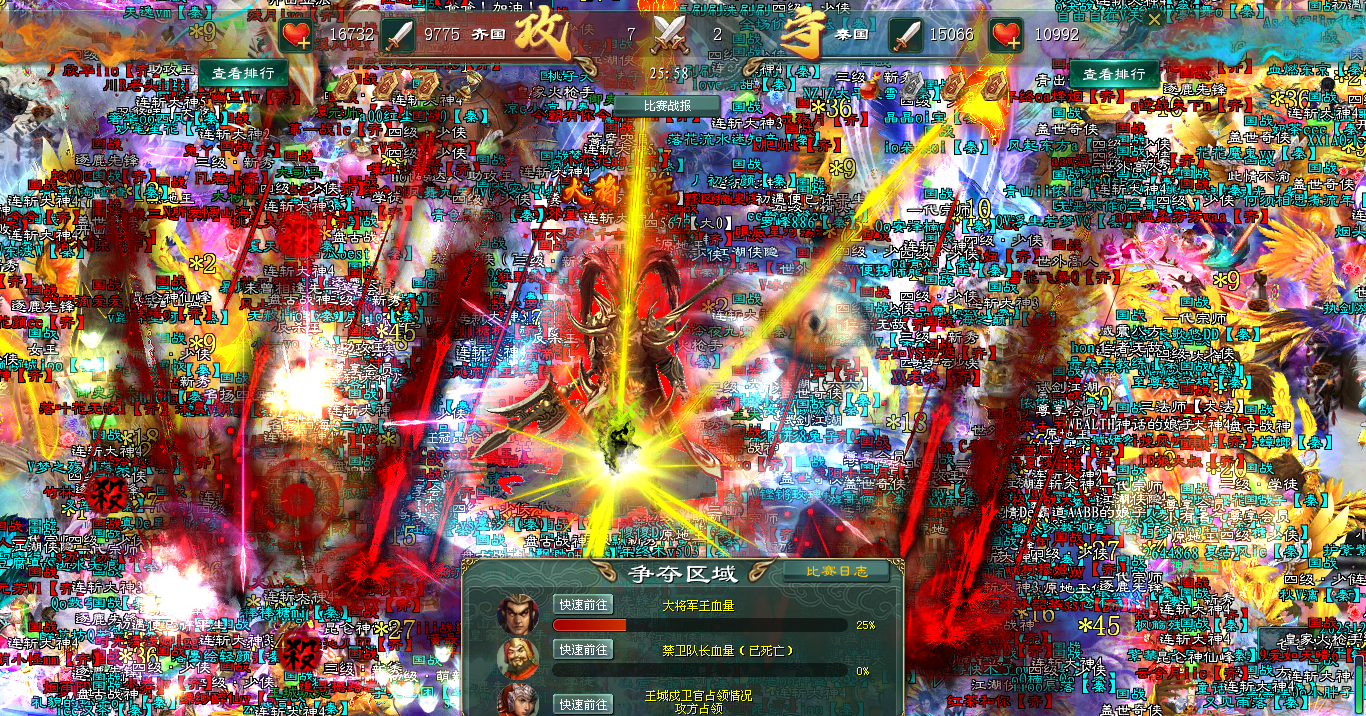 一半血量时,异变陡生!大将发出求救号角,齐国将士迅速接令,瞬间在大将外围筑起一道更为厚实的人墙。战斗激烈程度陡然攀升!秦国攻势为之一滞,但旋即以更凶猛的姿态扑上。大将血量继续下降,秦国拉出帮主令,精锐尽出,企图一举攻破齐国的防线,击杀大将。齐国将士丝毫不惧,更没有退缩可言。他们甚至分兵再度争夺城管所,试图截断秦军的增援力量。关键时刻,齐国一道帮主令将更多高战力号传送到大将身前,秦军的猛攻再次被强行遏制。