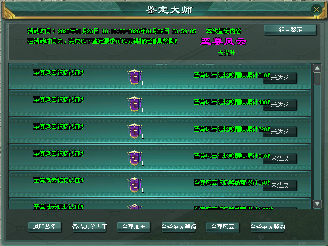 至尊风云鉴定达成等级,获完美-2025至尊风云榜随机记忆、史诗-2025至尊风云榜自选记忆等指定道具奖励!