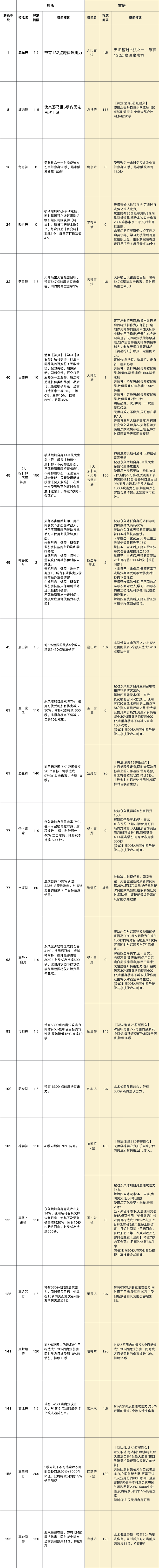 新旧技能对照表: