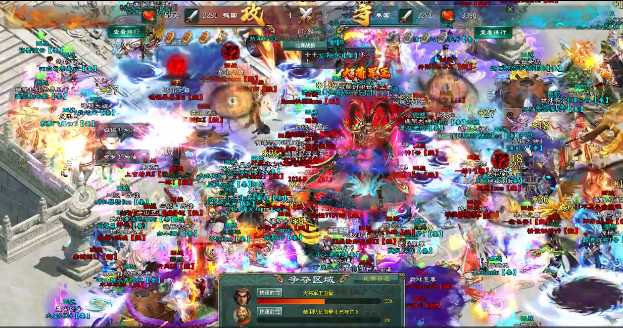 但是铁血一般的魏军怎能被这区区集结令给打倒,热火一般的意志让魏军几乎每个战士都是原地复活满了才会安全继续接令战斗,在这疯狂进攻下,大将军王开始了疯狂掉血。