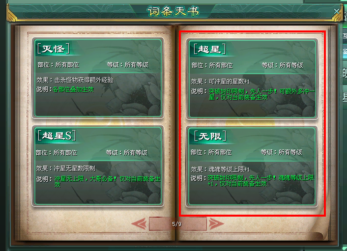 1、极品词条:【超星】(提高星星上限)、【无限】(提高魂魄上限),优先级最高,可大幅提升装备潜力;