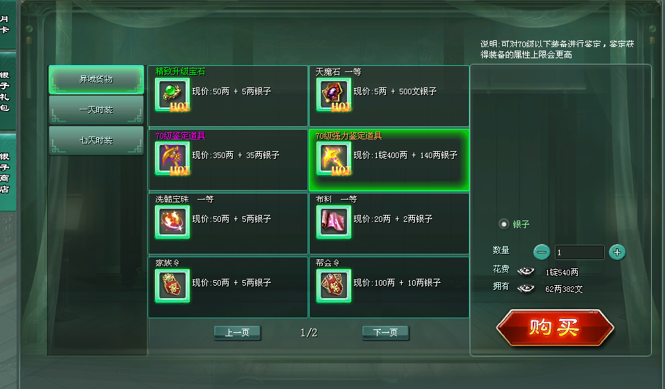 鉴定道具获取:可在装备锻造师处,用多余的完美紫装备消耗经验和银子兑换;也可通过摆摊、拍卖行直接购买其他玩家售卖的鉴定道具,按需刷新词条。银子商店也有鉴定道具可以直接买。