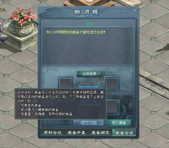 (3)前期装备无需花费银子强化,避免资源浪费,装备随等级替换即可。多余的低品质装备可留存,用于后续合成高阶装备。